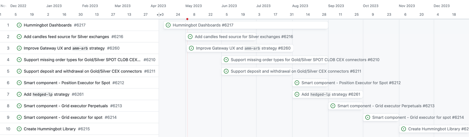 To ensure transparency and keep our community informed, we have created a public GitHub project called Hummingbot Roadmap.