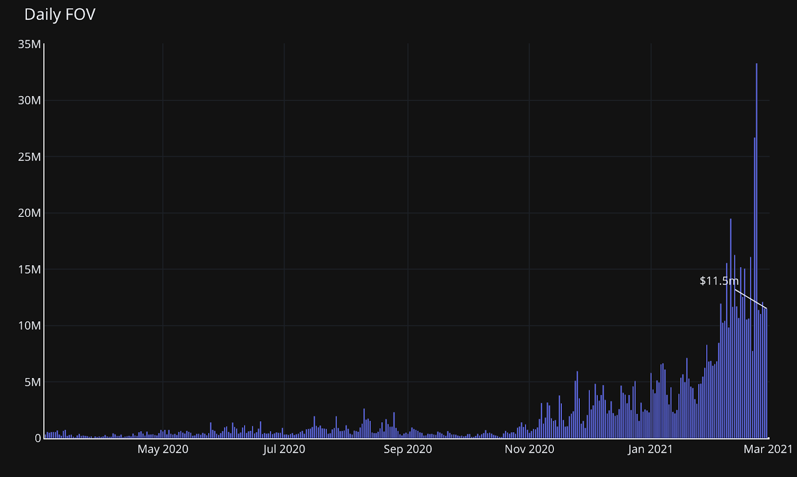 Weekly volume of $91m in the last week of February 2021