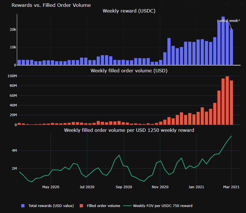 Filled order volume vs. reward pool¶