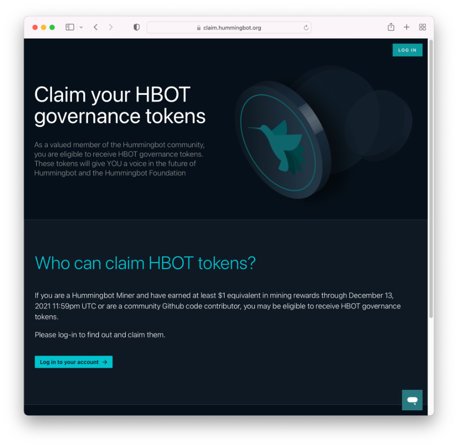 Users of Hummingbot Miner who are eligible to claim tokens can visit the Claim Site and log in with their Miner credentials.