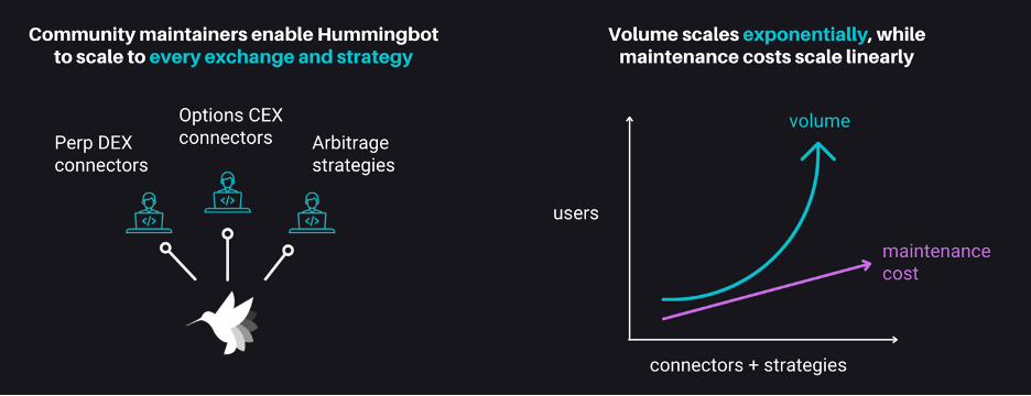 Like our spiritual predecessor the Linux Foundation, we believe that community maintenance is key to scaling Hummingbot to every exchange and blockchain and enabling traders to build any type of bot.