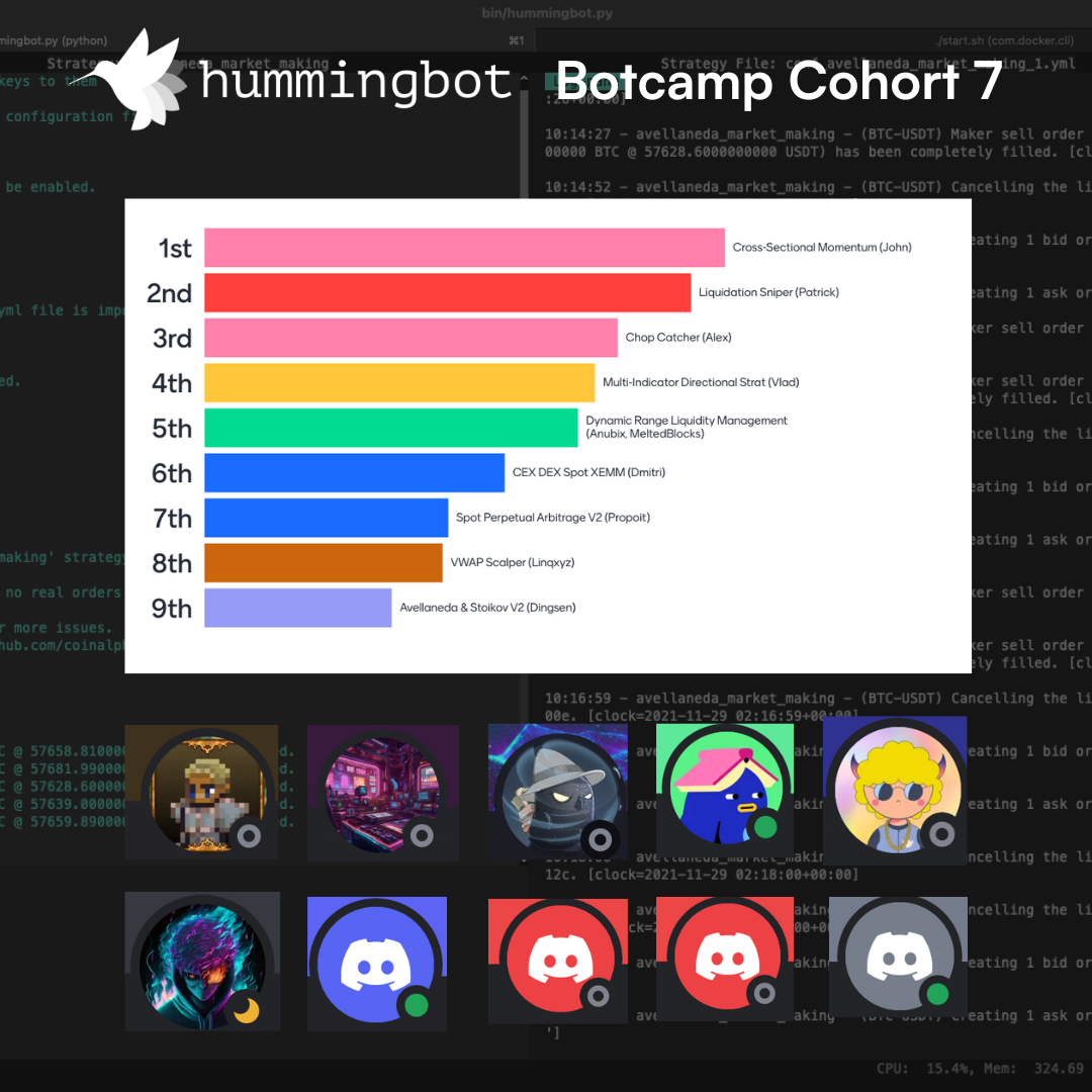 The seventh cohort of Hummingbot Botcamp recently finished with a milestone Demo Day that showcased the innovative strategies developed by our talented cohort participants. Here’s a detailed recap of the exciting strategies presented and the alpha-filled insights shared!
