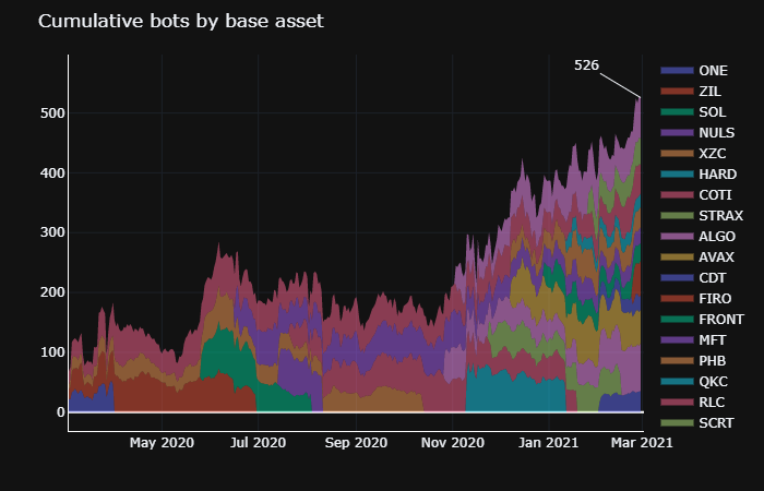 Hummingbot Miners were accounting for a meaningful amount of volume for Harmony ONE and Algo for the month, as much as 87% and 25%, respectively: