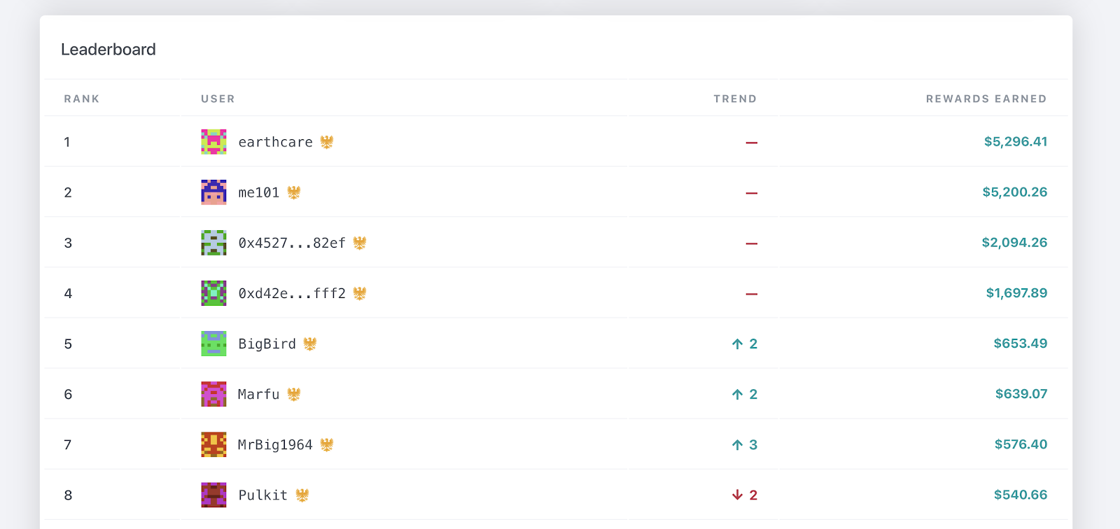 The leaderboard now shows each miner’s change in rewards ranking from the previous week. Some users use this as a way to track how their bots are calibrated against other miners. And, a little friendly competition never hurt anyone…. right??