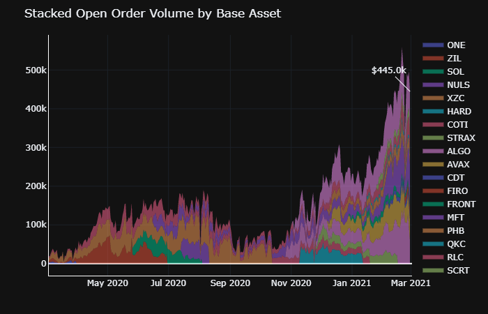 Average daily open order volume reached an all-time high of $560k this past month, and is currently $445k: