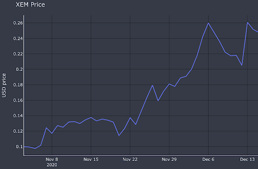 Over the past few weeks, we have seen great participation from NEM liquidity miners and exceptional XEM token performance. With liquidity mining, NEM is able to introduce the project to a broader trader community and motivate individual traders to promote its token liquidity. During a little over 1 month of the liquidity mining campaign period, 142 distinct individuals have participated and earned rewards as of December 15th, 2020. They accounted for as much as 11% of total XEM trading volume on Binance, and as much as 50% for the XEMETH trading pairs.